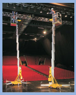 Light, compact and designed for fragile floor-surfaces, this type of electric platform is for indoor use. They rise to between 7 and 14 m in height. They are ultra-light and easily transportable, even in a van.