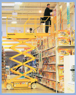 The ideal platform for difficult- to-reach places, masts climb directly to a working height of 6 to 12m (low range of rotation). Intended mainly for maintenance work and warehouse inventories, they can be used both outdoors and indoors, where their white tyres do not leave marks and respect all types of floor surface.