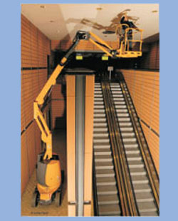 Measuring from 12 to 41m, our articulating booms take you where you want to be for maintenance, installation or pruning work. Diesel or electric powered, they get round tricky obstacles thanks to their geometry and long reach. Articulating booms of less than 20m are capable of negotiating restricted spaces, thanks to the size of their chassis which is adapted to allow rotation within the vehicle clearance.