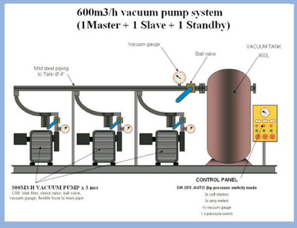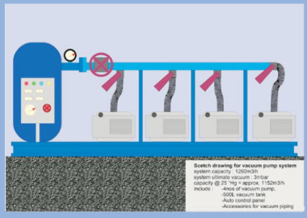 At ELMOVAC, we would like to make ourself available in providing value-added service on the system integration fields. We provide a good vacuum pump system design which include, base frame, control panel (with auto mode and soft start/inverter), vacuum tank, pressure gauge with transmitter (output 4-20mA or 0-5v). With this system the installation will be as simple as connect the electrical connection and vacuum pipe connection.