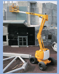 Measuring from 12 to 41m, our articulating booms take you where you want to be for maintenance, installation or pruning work. Diesel or electric powered, they get round tricky obstacles thanks to their geometry and long reach. Articulating booms of less than 20m are capable of negotiating restricted spaces, thanks to the size of their chassis which is adapted to allow rotation within the vehicle clearance.
